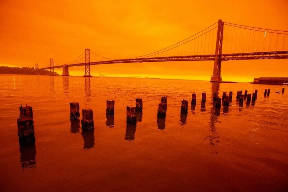 Smoky skies from the northern California wildfires turn the sky a glowing orange in San Francisco, California on Wednesday, Sept. 9, 2020. Credit: Ray Chavez/MediaNews Group/The Mercury News via Getty Images
